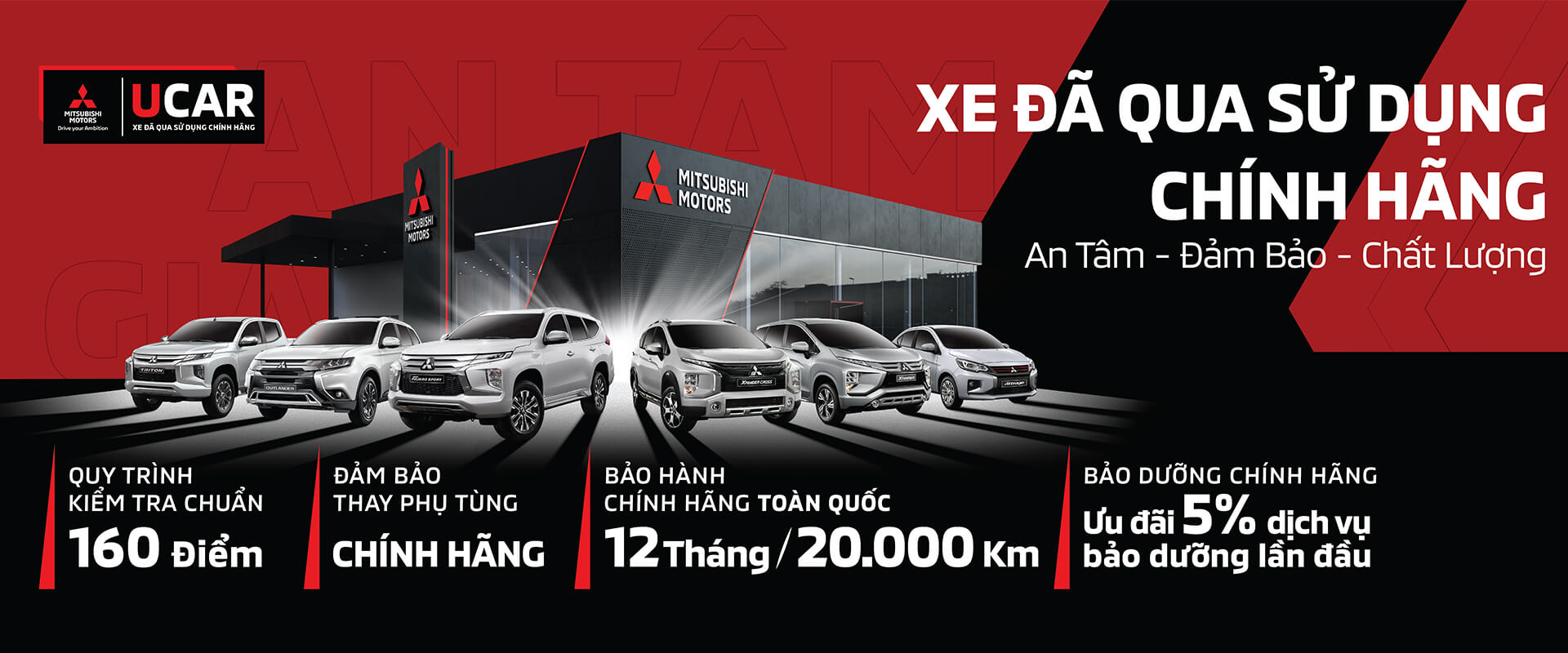 Chúng tôi cam kết mang đến dịch vụ bảo dưỡng và sửa chữa theo tiêu chuẩn chất lượng của Mitsubishi trên toàn cầu.